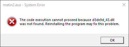 The client has been updated to DirectX 9. This means that if DirectX 9 is not installed on your computer, you might be met with one of these error messages: